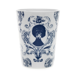 陶瓷水杯,正反两侧具有不同的图案设计。