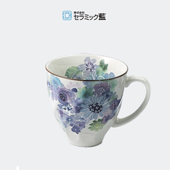 日本原产ceramic 蓝美浓烧陶瓷茶杯水杯咖啡杯花工房1个装