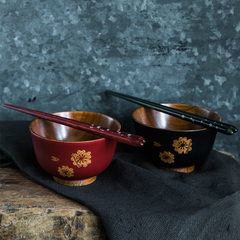 日本原产wakacho若兆传统漆器栗木碗夫妻碗筷套装结婚礼物