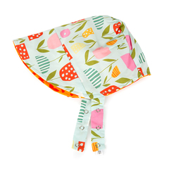 造型时尚可爱的美国制造儿童双面遮阳帽! 全棉材质柔软舒适, 柔软可随意翻转的帽沿, 可随意调节并两面使用的摁扣式绑带,双面图案, 精细的手工加工质量, 为宝贝的四季增添贴心又俏皮的色