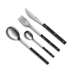 德国原产mono伊普西龙乌木手柄不锈钢西餐具 4件套(餐叉,汤匙,短刃餐刀,甜品勺)