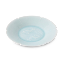 陶艺家塚本快示(1912-1990)深为定窑白瓷魅力吸引,形成了自己端严雅丽的创作风格。他所创立的快山窑美浓烧瓷器薄胎薄釉,胎土雕花富有立体感。双鱼灵动活泼,增添了不少情趣。