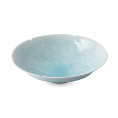 陶艺家塚本快示(1912-1990)深为定窑白瓷魅力吸引,形成了自己端严雅丽的创作风格。他所创立的快山窑美浓烧瓷器薄胎薄釉,胎土雕花富有立体感。飞鸟纹栩栩如生,吉祥如意。