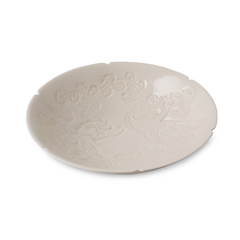 陶艺家塚本快示(1912-1990)深为定窑白瓷魅力吸引,形成了自己端严雅丽的创作风格。他所创立的快山窑美浓烧瓷器薄胎薄釉,胎土雕花富有立体感。飞鸟纹栩栩如生,吉祥如意。