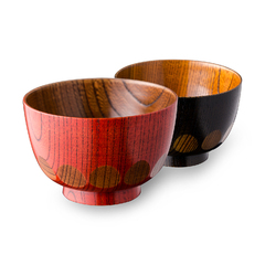 榉木的细纹与漆的光泽相结合,是非常珍贵的漆器;木制的碗令人惊叹的轻,且不易导热,便于使用。