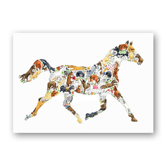 英国 Louise Tate Illustration黑白动物插画H IS FOR HORSE马500mm*400mm,英国画家 Louise Tate的组合画系列设计新颖,富有想象力和创造力,看似一匹大马,里面却包含了41匹小马、12根胡萝卜、22只马靴等,内容生动有趣,很有观赏价值和收藏价值。