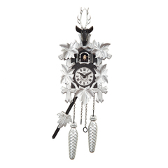 1.德国黑森林布谷鸟钟原装进口,高品质石英机芯;2. 雕刻布谷鸟钟,精细的羚羊及其尖角,纹理清晰,刻画大气的装饰花纹,红、蓝、白三色可选; 3.半点或者整点,布谷鸟推门而出,清脆报时;4.Engstler石英音乐钟包含12首优美音乐可选;5. 木质表盘和指针,精细雕刻,古朴大气;6.动力来源于电池,松果造型重锤为经典装饰。
