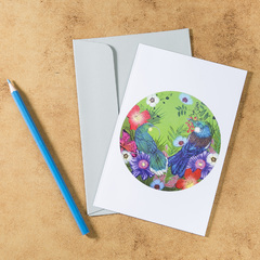 新西兰Tikitibu 垂耳鸦和蜜雀 圆形贺卡