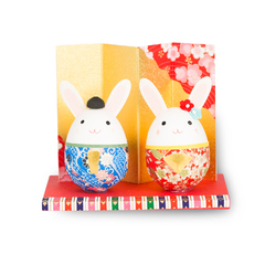 日本原产Ishikawa 美浓和纸 纸质玩偶摆件 情侣兔子
