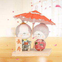 日本原产Ishikawa 美浓和纸 纸质人形撑伞祖父母玩偶摆件