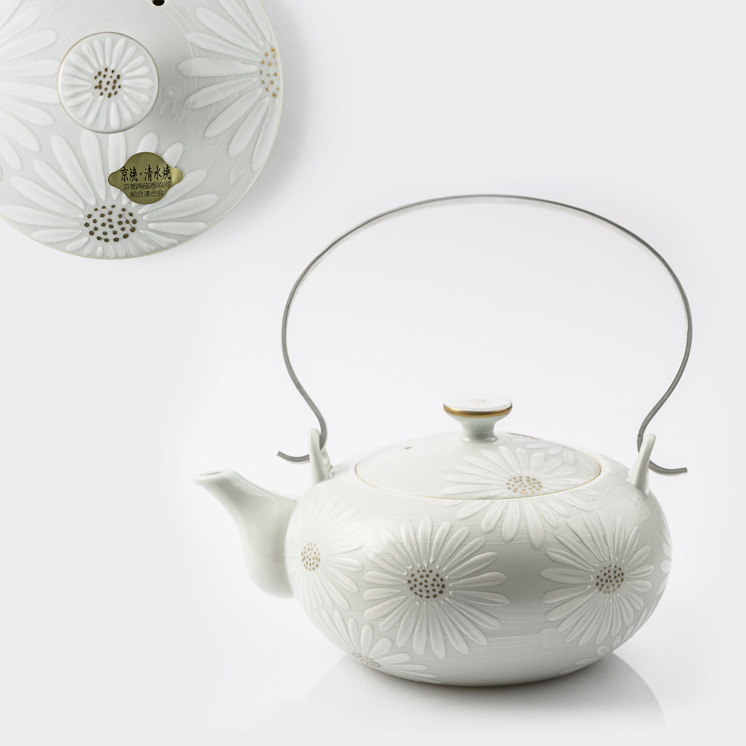 1.400年历史的日本手工京烧•清水烧工艺; 2.健康环保,无铅处理; 3.白菊图案。
