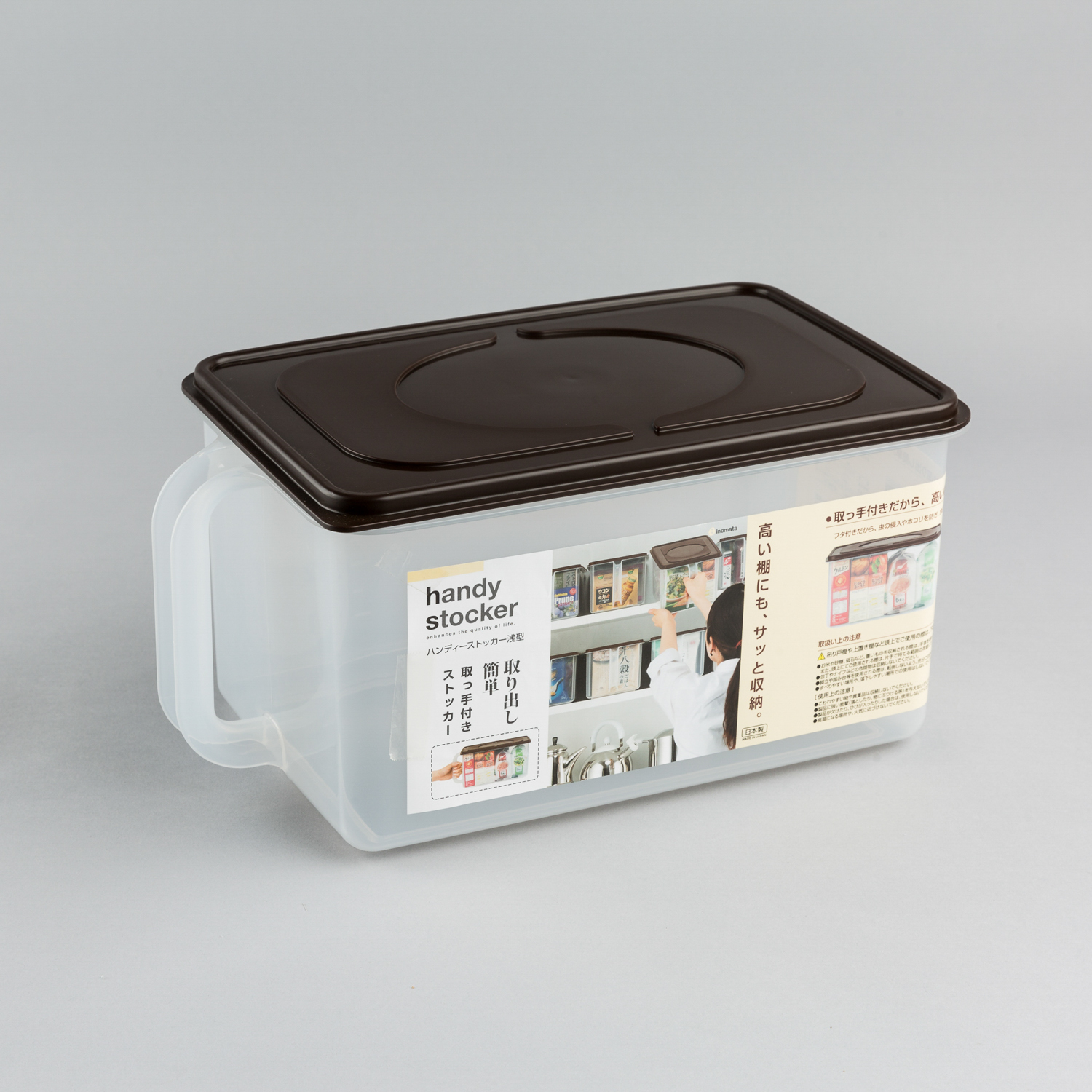 日本原产inomata厨房收纳箱带盖收纳盒带手柄收纳筐 浅型