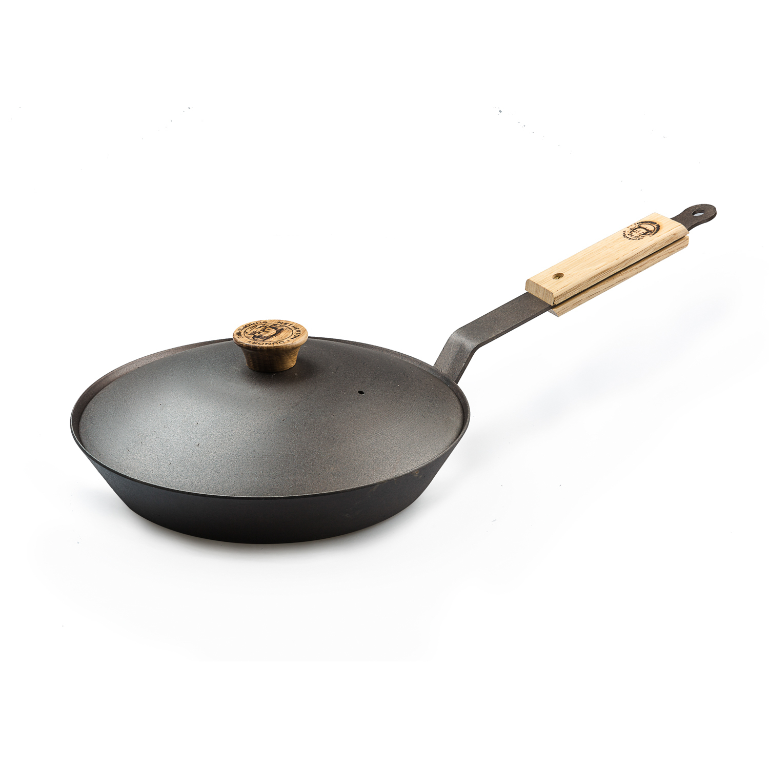 英国原产Netherton手工铁煎锅炒锅26cm橡木柄带锅盖