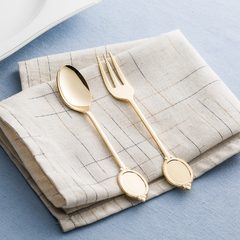 1.日本原产,手工打磨; 2.铁素体不锈钢SUS430镀金材质,有良好的耐腐性和耐磨性; 3.可挂杯沿的咖啡勺,使用方便餐勺餐叉套装组合; 4.皇冠造型,简约大气; 5.清洗方便,健康环保。