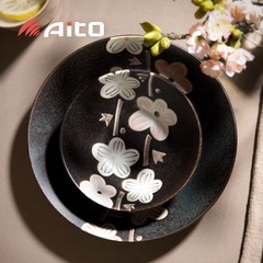 日本aito Nordic Flower美浓烧陶瓷碗花朵黑色M