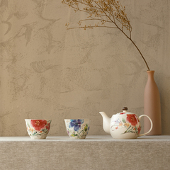 日本原产ceramic 蓝美浓烧茶壶茶杯一壶两杯套装花水彩