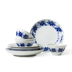 雪割草,在日本与樱花齐名,它盛放在冬季,代表着坚韧。白底深蓝,是餐桌上的点缀色。美浓烧工艺,使用安心放心。
