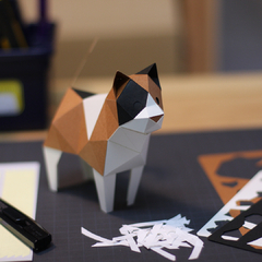 日本原产KAKU KAKU3D立体纸质拼图动物纸模儿童DIY玩具三色猫