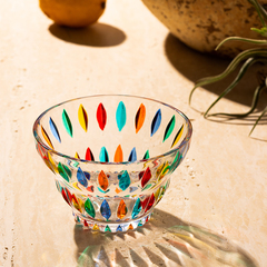 1、意大利威尼斯原装进口,健康无铅彩色玻璃碗。2、可作为沙拉碗,水果盘,甜品碗,冰沙碗等。3、手工上色,每一款都与众不同。4.多彩线条,光影交错,威尼斯缩影。