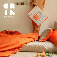 CRIA 60支纯棉贡缎双面拼色床上套件(橘色+灰色)枫叶橘