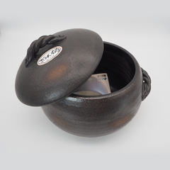 日本原产sajitoki佐治陶器万古烧黑吹绳纹栗型米饭陶土锅汤锅