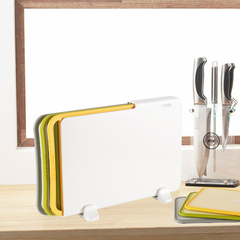 1.三块套装,生冷分开更卫生。2.边缘沟槽,防止汁液流出。3.手柄设计方便取出菜板,无需用手直接接触菜板。4.砧板架底部通风孔便于沥水,使切菜板保持干燥。