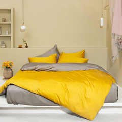 CRIA 60支纯棉贡缎双面拼色床上套件(黄色+灰色)