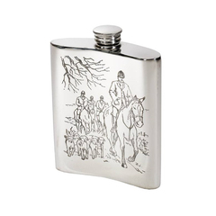 英国原产WENTWORTH PEWTER锡制酒壶便携酒壶狩猎场景酒壶