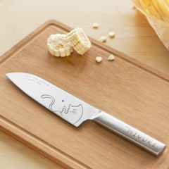 钼钒钢刀身,硬度高更锋利;不锈钢刀柄,可进洗碗机消毒柜。全钢刀身,更有质感,激光刻印可爱猫咪造型,放心使用