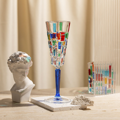 1.闻名于世的威尼斯玻璃制品。2.古老的手工工艺。3.无铅彩色玻璃杯,健康环保。4.半透明彩色,玻璃工匠手工上色,与众不同。5.色彩斑斓,颜色交织,充满威尼斯风情。.6.杯口圆润、杯壁厚实。