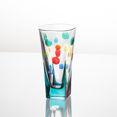 1.闻名于世的威尼斯玻璃制品。2.古老的手工工艺。3.无铅彩色玻璃杯,健康环保。4.手绘波点,色彩斑斓。.5.瓶口圆润、杯壁厚实。