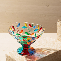 1.意大利威尼斯原装进口,健康无铅彩色玻璃碗。2.可作为沙拉盘,水果盘,甜品盘,凉菜盘等。3.手工彩绘,半透明涂料,每一款都与众不同。4.不规则盘口,多彩叶纹,光影交错,威尼斯缩影。