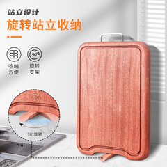 1.选用乌檀木,整木制作,木质结实。2.耐剁不易开裂,韧性好,不伤刀。3.底部90度旋转支架,收纳方便。4.水槽设计,防溢汁。5.双面可用,分类使用,健康卫生。6.一冲即净,清洗方便。