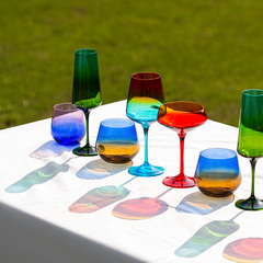 1.闻名于世的威尼斯玻璃制品。2.古老的手工工艺。3.无铅彩色玻璃杯,健康环保。4.半透明彩色,玻璃工匠手工喷色,与众不同。5.杯口圆润、杯壁厚实。