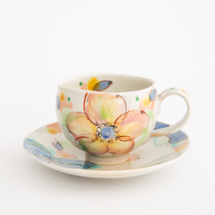 日本虚空藏窑 风之舞语系列九谷烧手工咖啡杯(带碟)