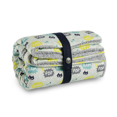 婴儿毯正面的全棉面料印有特别、生动、活泼的图案,保证了实用性的同时也增加了趣味性。具有多种用途:新生儿包被,盖毯,床单,浴巾,换尿布垫,爬行垫,玩耍垫….