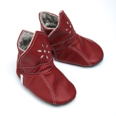 1.鞋面采用1.2mm厚小牛皮材质,柔软、透气。2.德国手工工艺,一针一线,看得见的用心。3.羊毛毡鞋垫、耐磨绒面防滑鞋底,柔软防滑,增加宝宝脚部抓地的稳定性。4.鞋子后跟细致缝线,两层1.2mm小牛皮,跟脚不磨脚。