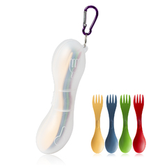 1.叉子和勺子一体化设计,使用方便,让吃饭更简单。2.一套有四个颜色,随心选择。3.叉勺中间有磁铁,可以吸附到铁制品上,同时四个可互相吸附,存放方便。4.收纳盒配有钥匙扣,外出野餐,携带方便。