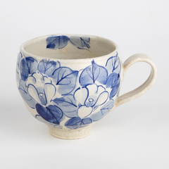 日本虚空藏窑蓝椿系列九谷烧白底手工 带柄杯