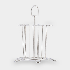 1.用于杯子沥水,可挂置五个杯子; 2.适合挂置各种类型功能的杯子; 3.圆形底座更稳固; 4.不锈钢材质,耐腐蚀,易清洗。