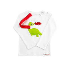 意大利Mamma No手工恐龙贴画自带奶嘴绳棉质婴儿长袖T恤