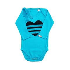 意大利Mamma No手工爱心贴画带奶嘴绳棉质婴儿长袖连体衣
