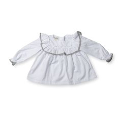 1.Benedita 设计时尚,让宝宝从刚开始就与众不同,给宝宝舒适体验。2.选用欧洲上等棉材质,柔软舒适。3.经验丰富的加工厂商,处理好每一个细节。4.灰色蕾丝的领边,可爱迷人。