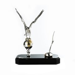意大利原产GOLD LINE镀金镀银实木底座老鹰笔筒雕塑摆件