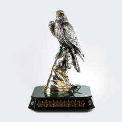 意大利原产GOLD LINE镀金镀银孔雀木底鹰睥天下雕塑摆件
