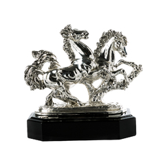 意大利原产GOLD LINE镀金镀银乌木底双骏齐驱雕塑摆件