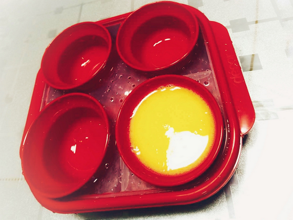 大概是因为底部加了水的原因,所以蒸蛋做的很嫩滑,很有老家的地锅做出来的味道;而且底部也没有附着在容器上;等天气再冷些,就可以充分利用四个小碗了,一个装蛋液,一个牛奶,剩下两个再装些爱吃的食物,一起热了去,倒是省时省力了。