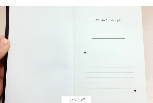 打开后,可以看到其设计也很贴心,简洁大方。纸张环保厚实,不刺眼也没什么刺鼻难闻的气味,书写笔手写顺手流畅,非常满意。