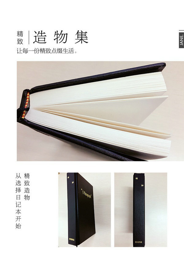 日记本的封面颜色主黑,“1 paragraph”为烫金字体,经典漂亮,第一眼就很喜欢。封皮是带有粗糙感的硬壳,很有磨砂感的,非常喜欢这种的封皮质感。