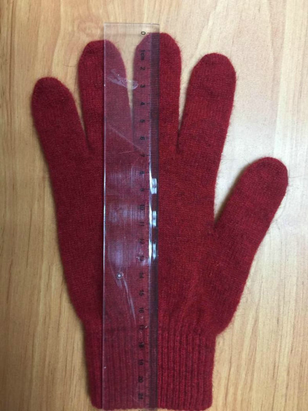 大小尺寸:在选择尺码的时候注意到网站上标识s码手套长是16cm,作为手小妹子佩戴应该是差不多的,然后收到手套没有洗过带起来是有点点偏大,手指的长短倒是差不多正好。拿尺子测量了一下,实际的大小如下图,因为没下水洗过,不清楚会不会有缩水的情况。